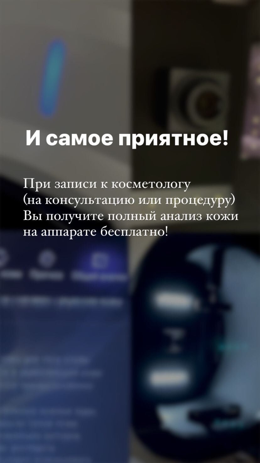 Была на консультации у косметолога,очень приятная девушка Ирина посмотрела на аппарате мое лицо и очень грамотно и доступно проконсультировала,дала рекомендации.